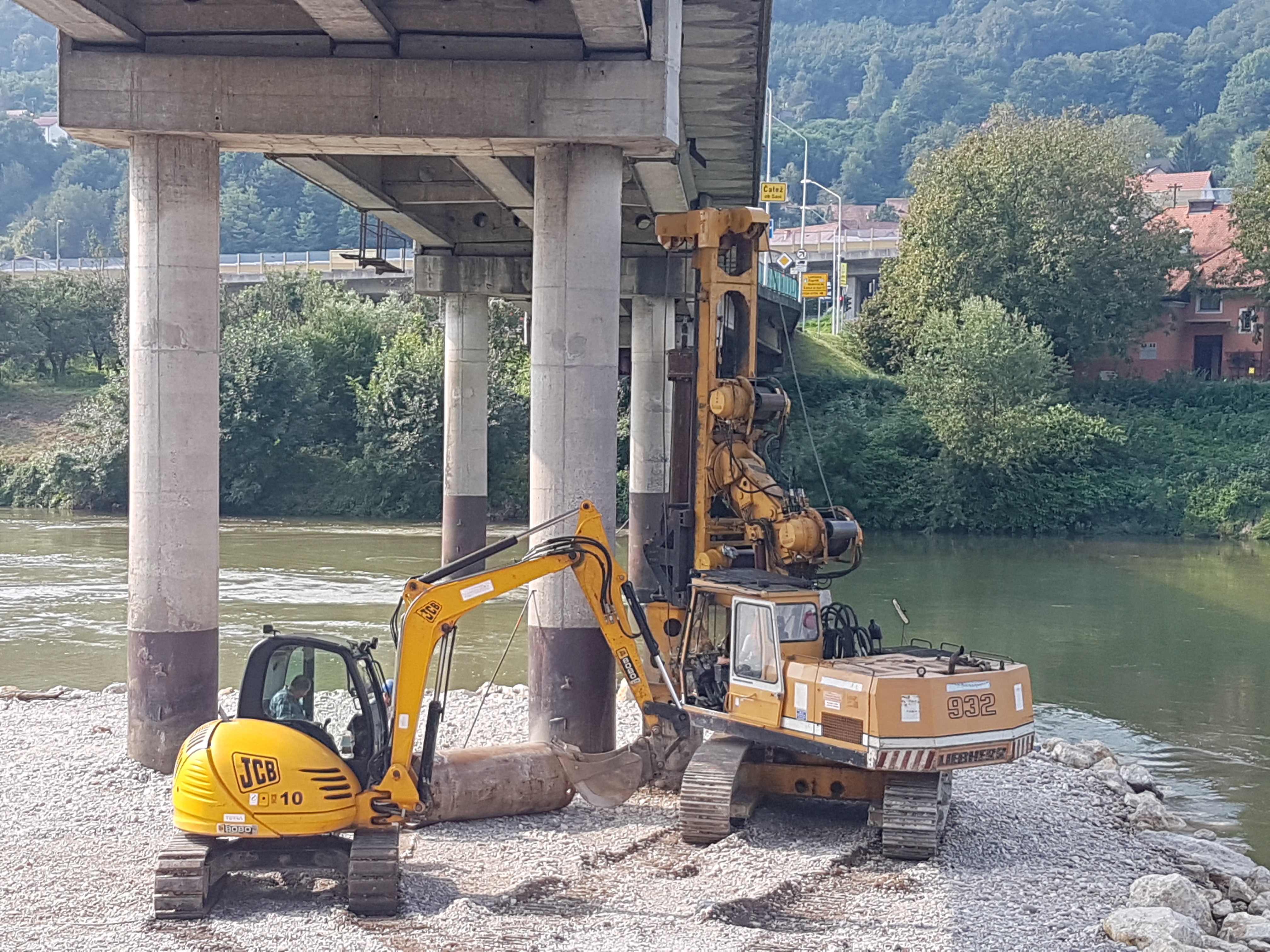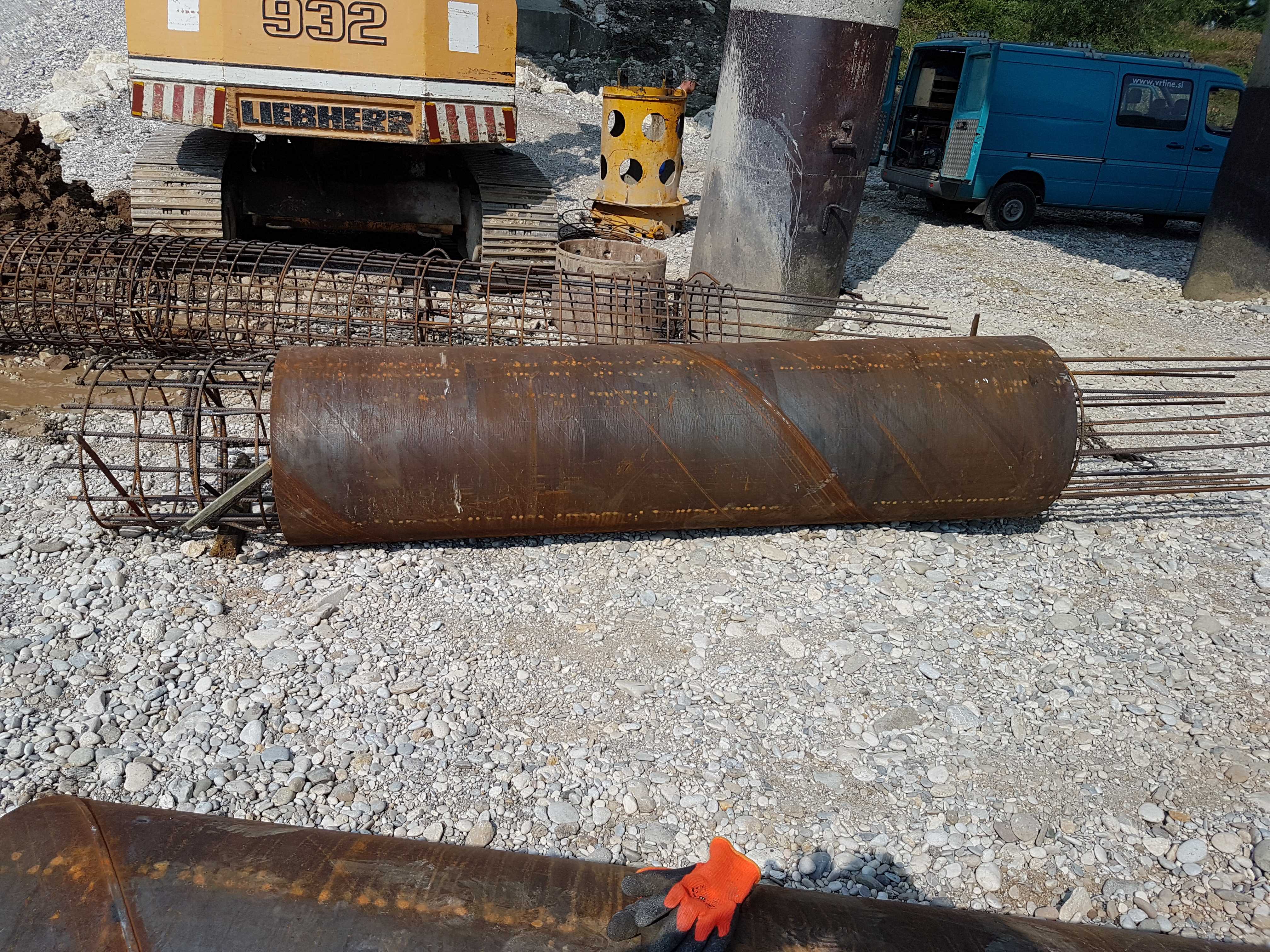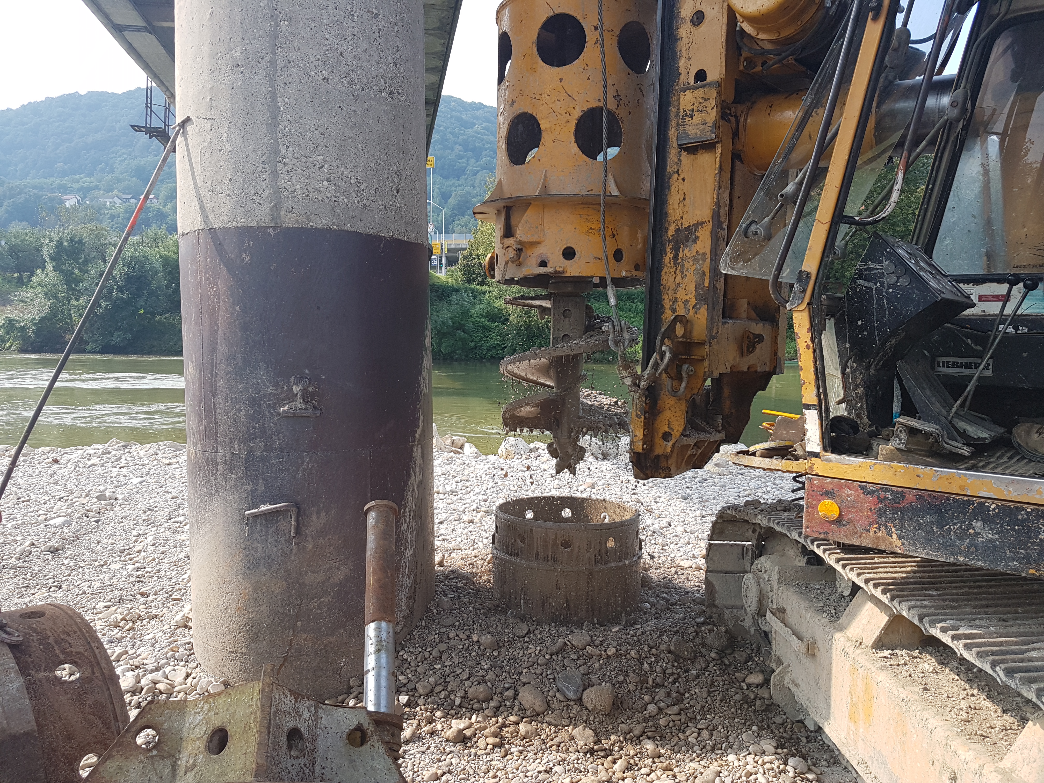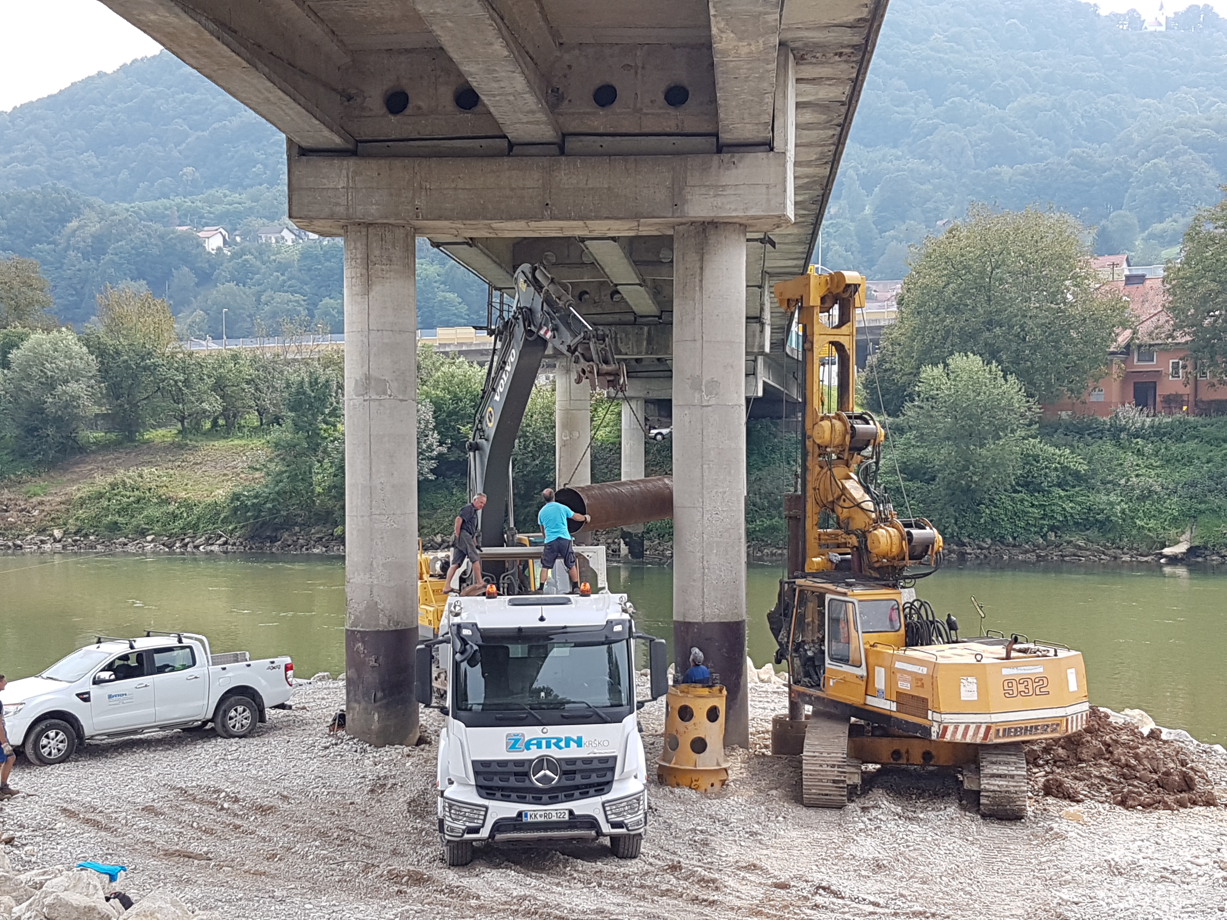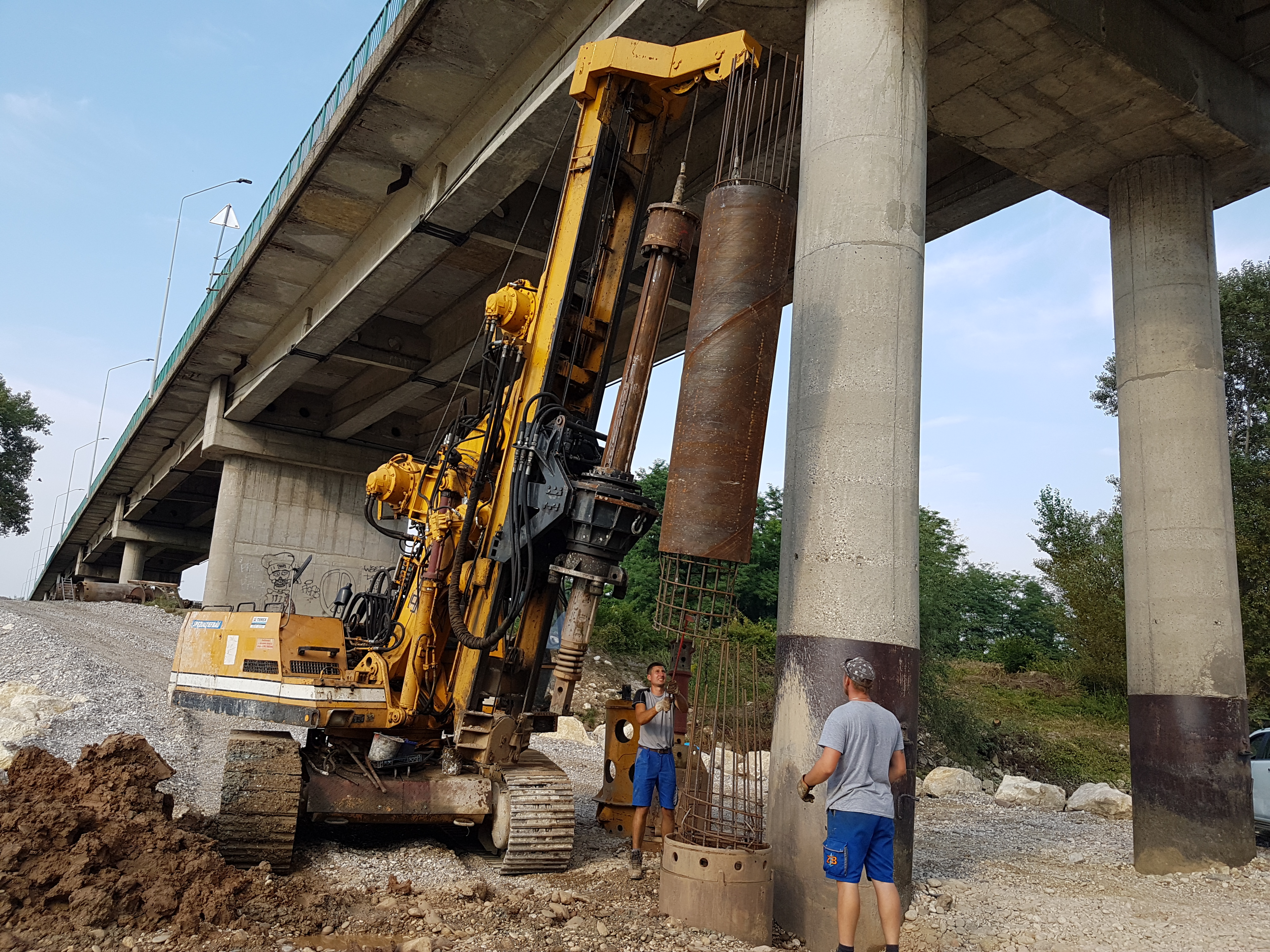 Največja težava je bilo le slabih 8 metrov svetle višine mostne konstrukcije (od delovnega platoja). S prilagoditvijo vrtalne garnituresmo lahko izvedli pilote premera 88 centimetrovm, globine 11 metrov. Preko armature so bile dodatno nameščene še jeklene zaščitne srajčke, ki ščitijo beton in armature.