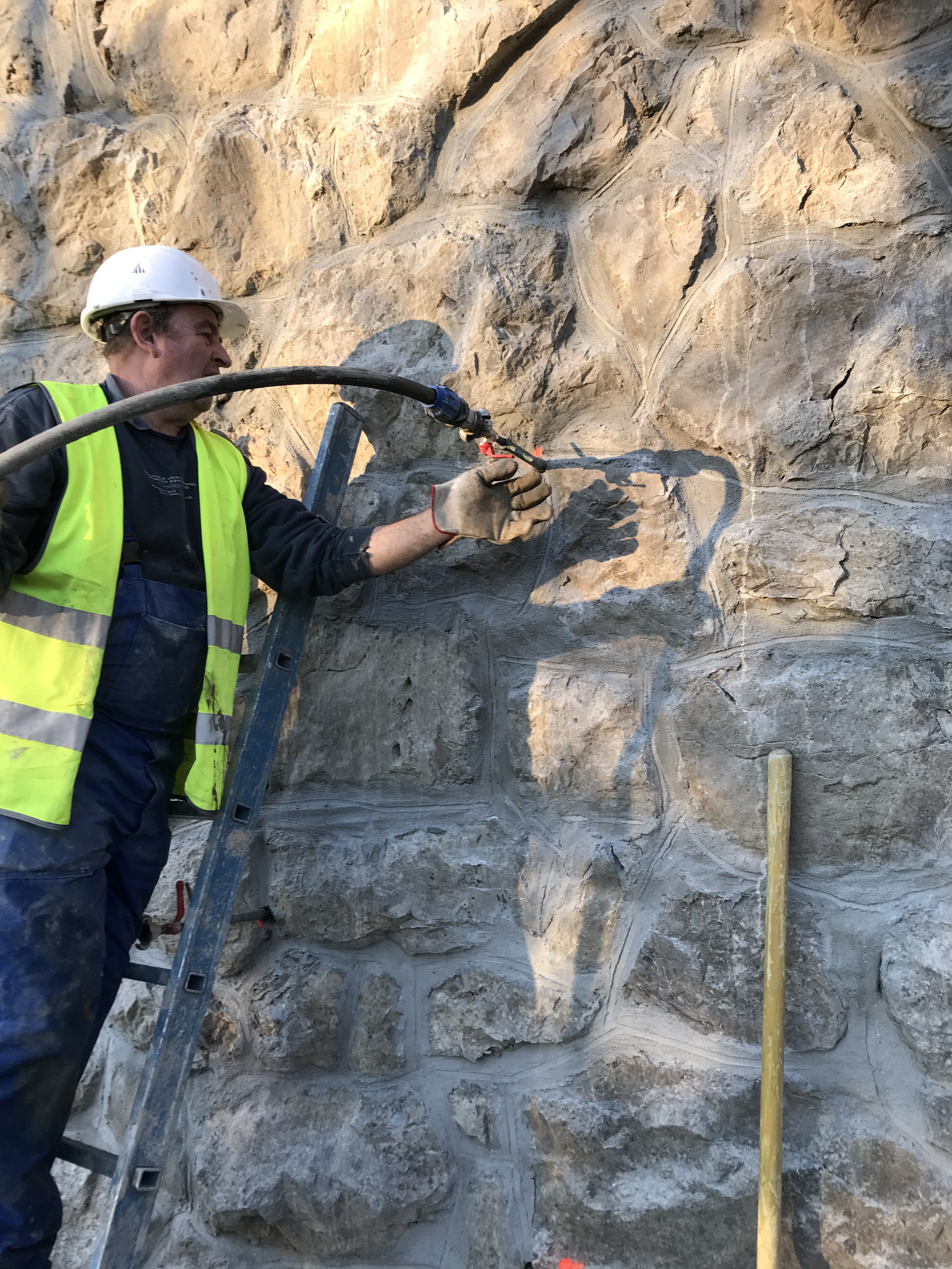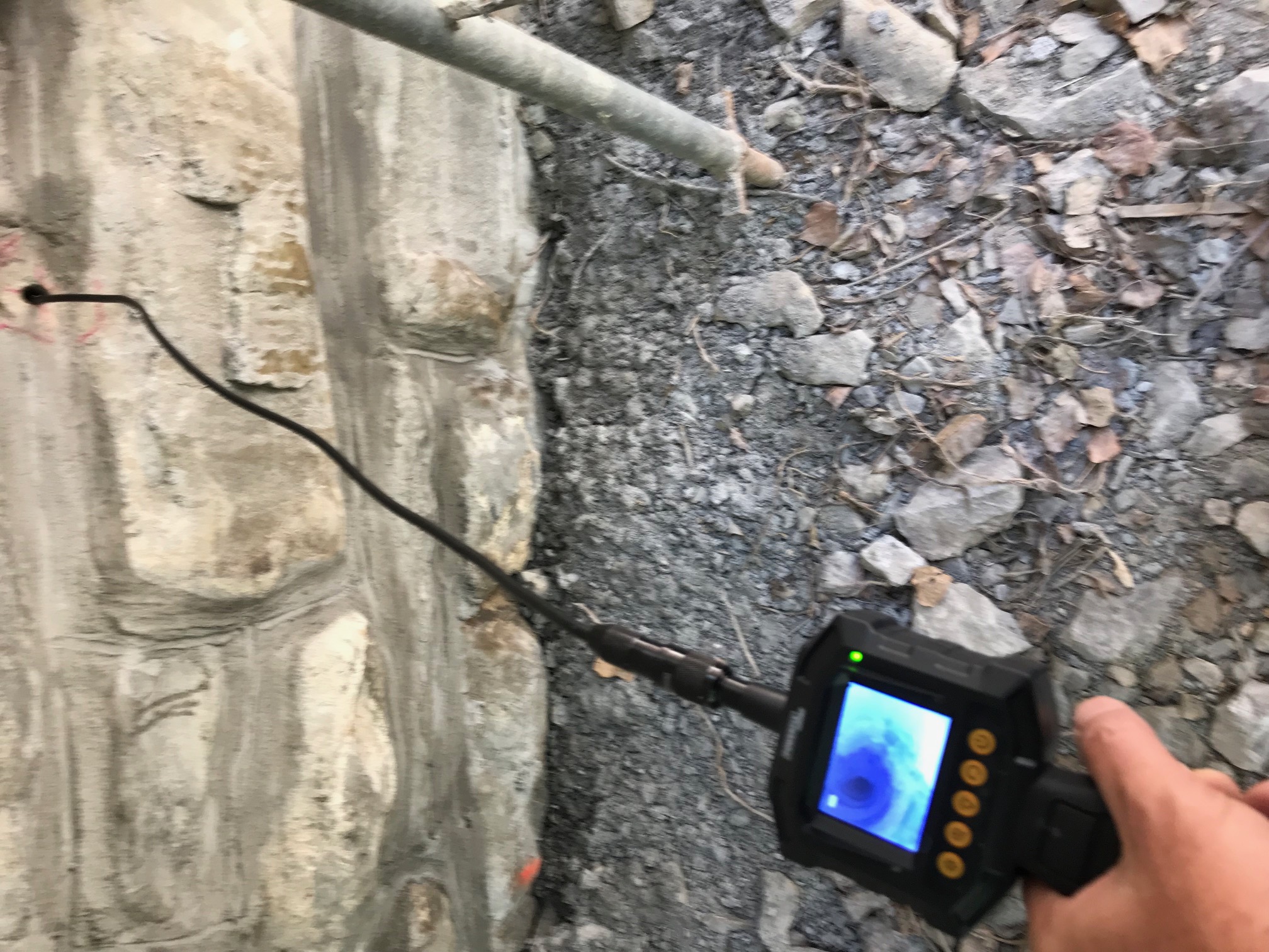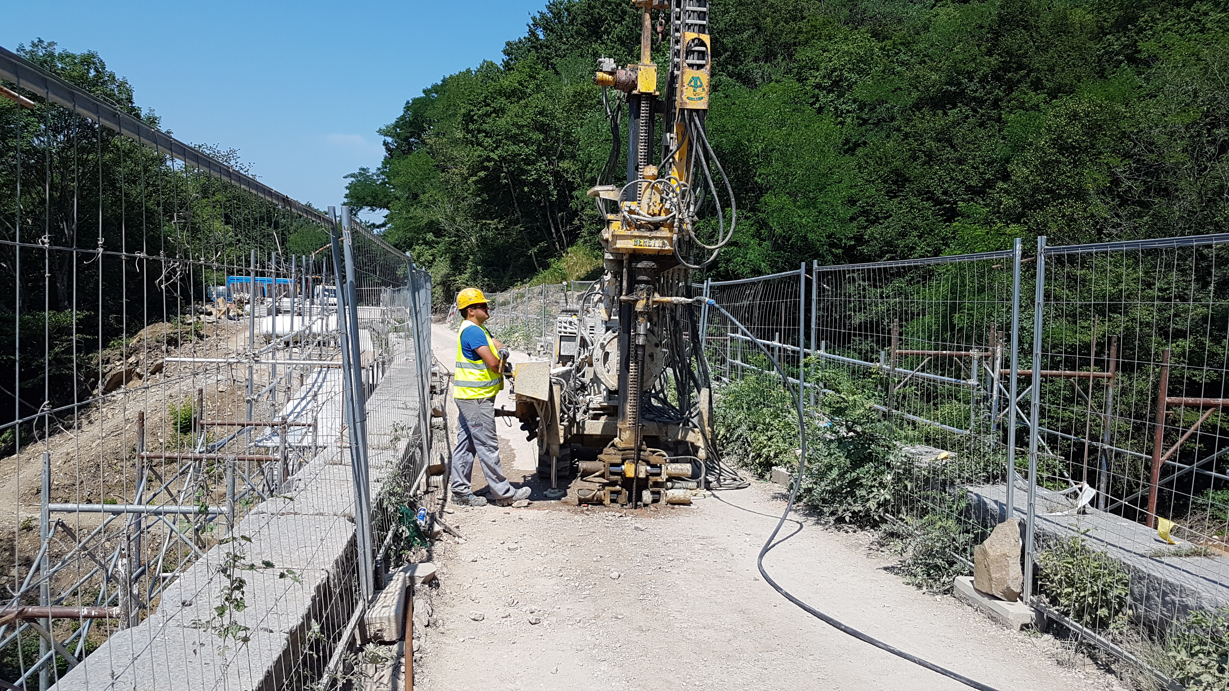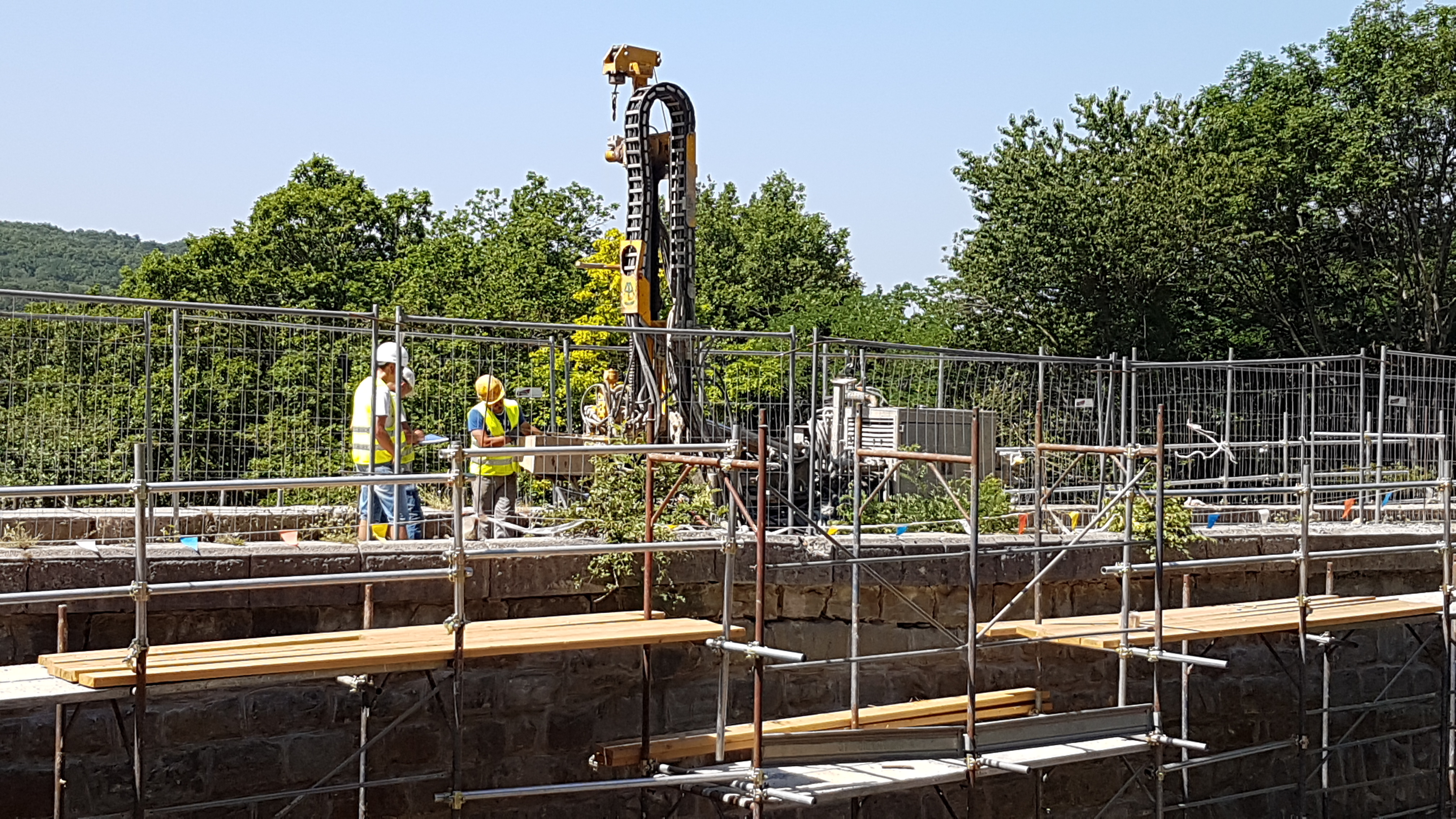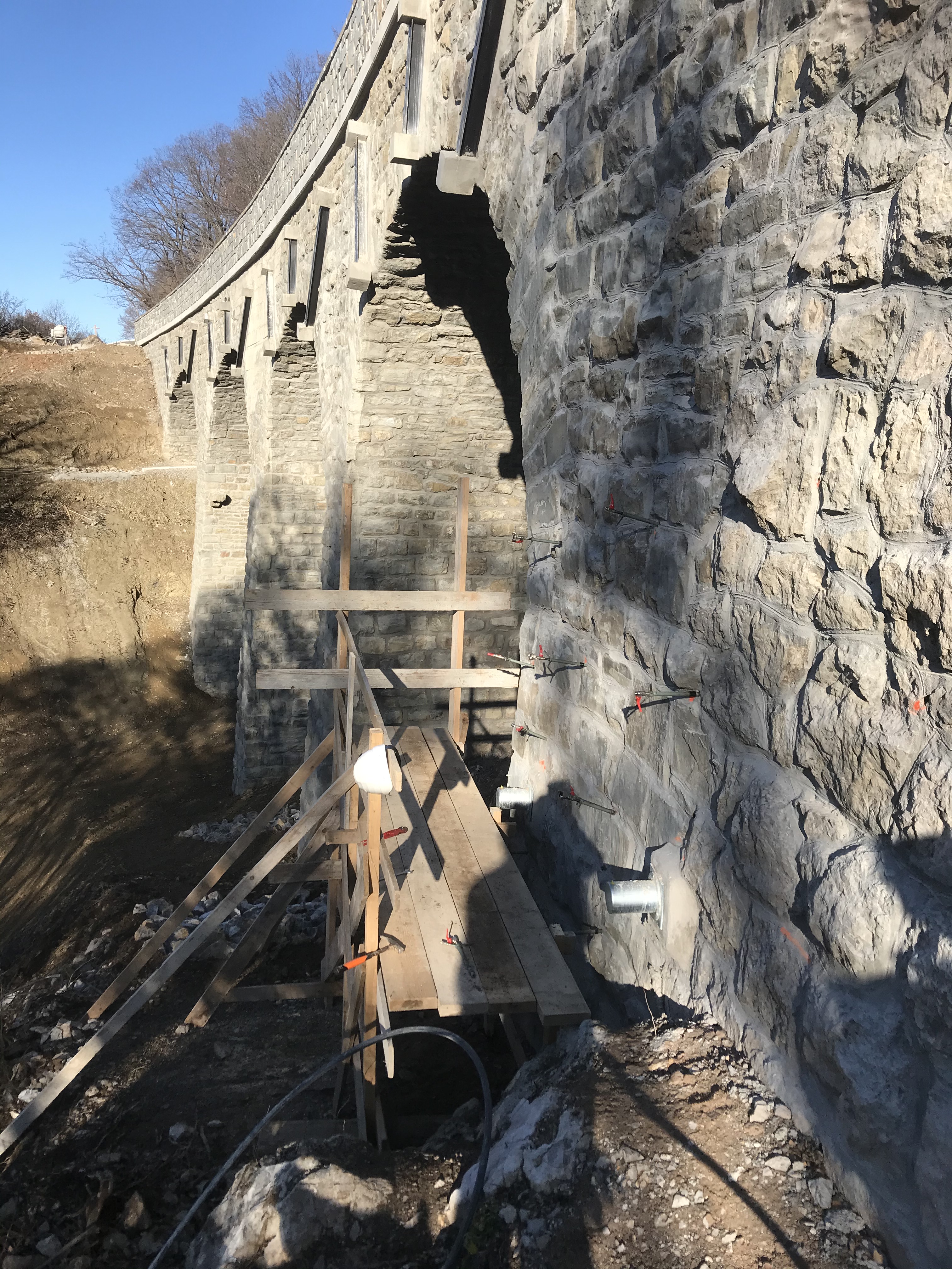 S testnim vrtanjem (ročno in strojno) ter injektiranjem smo preverili kompaktnost kamnitih opornikov in naročniku prihranili stroške nepotrebenega injektiranja več kot 200 ton cementa.
