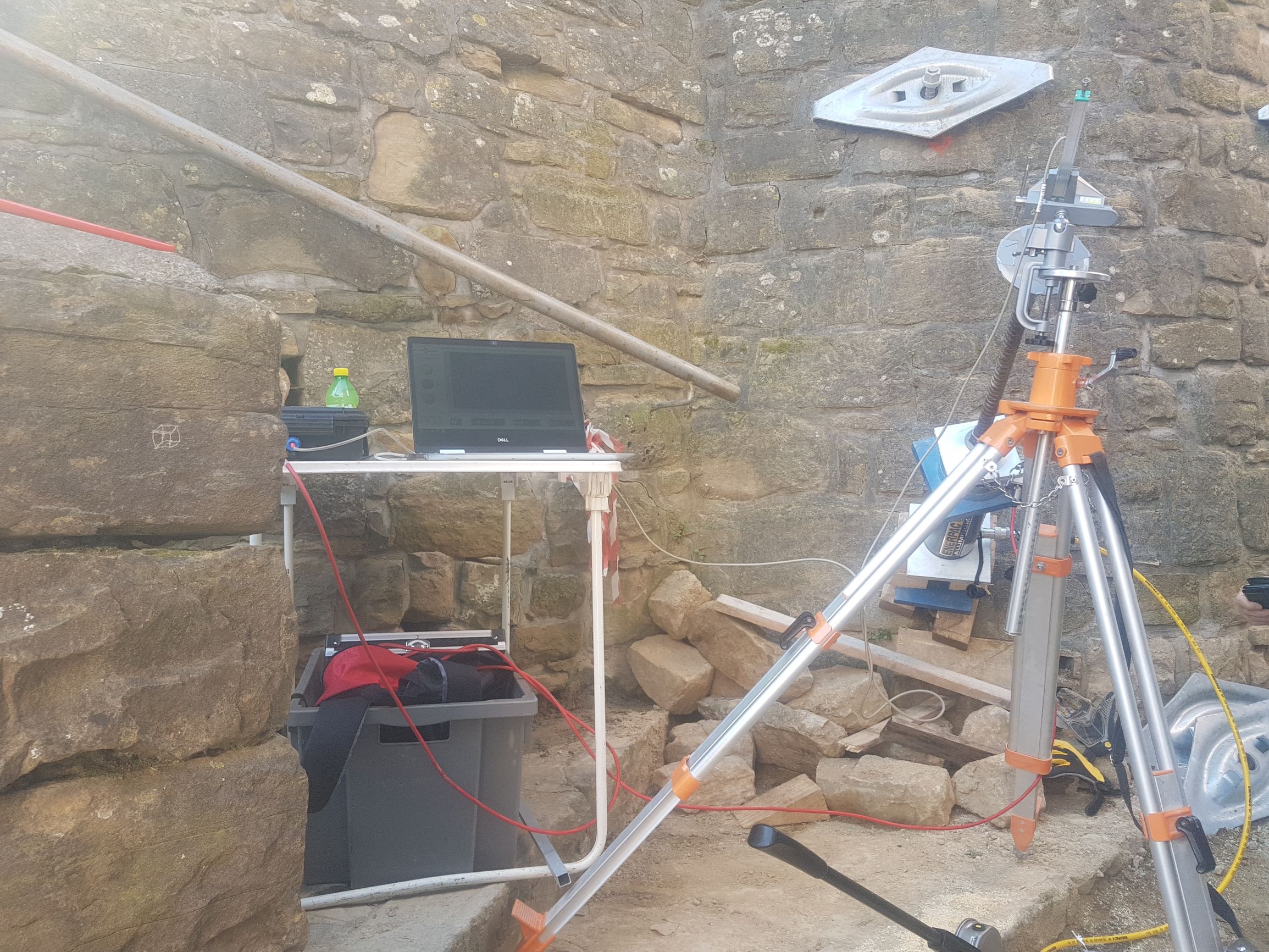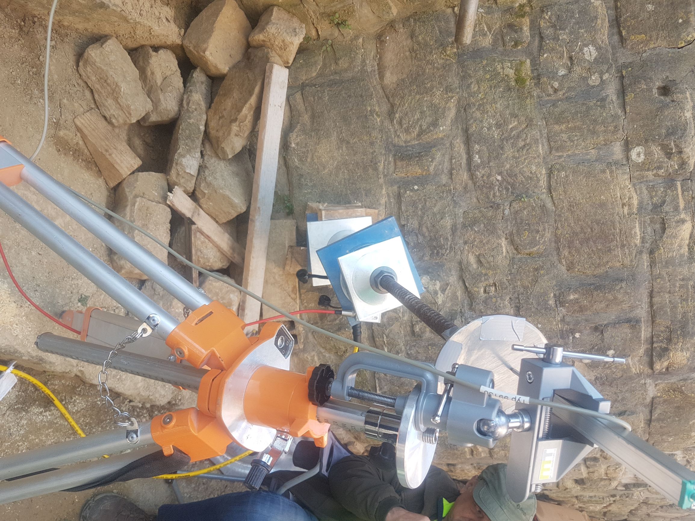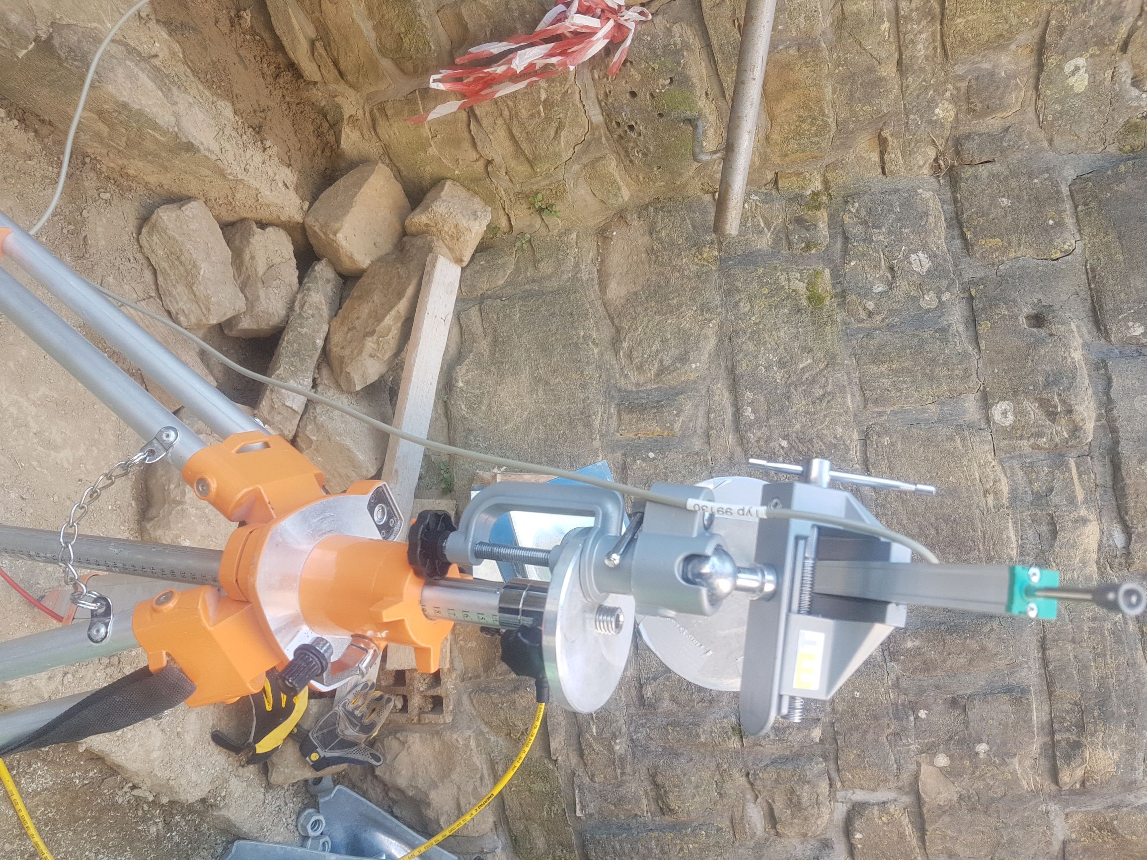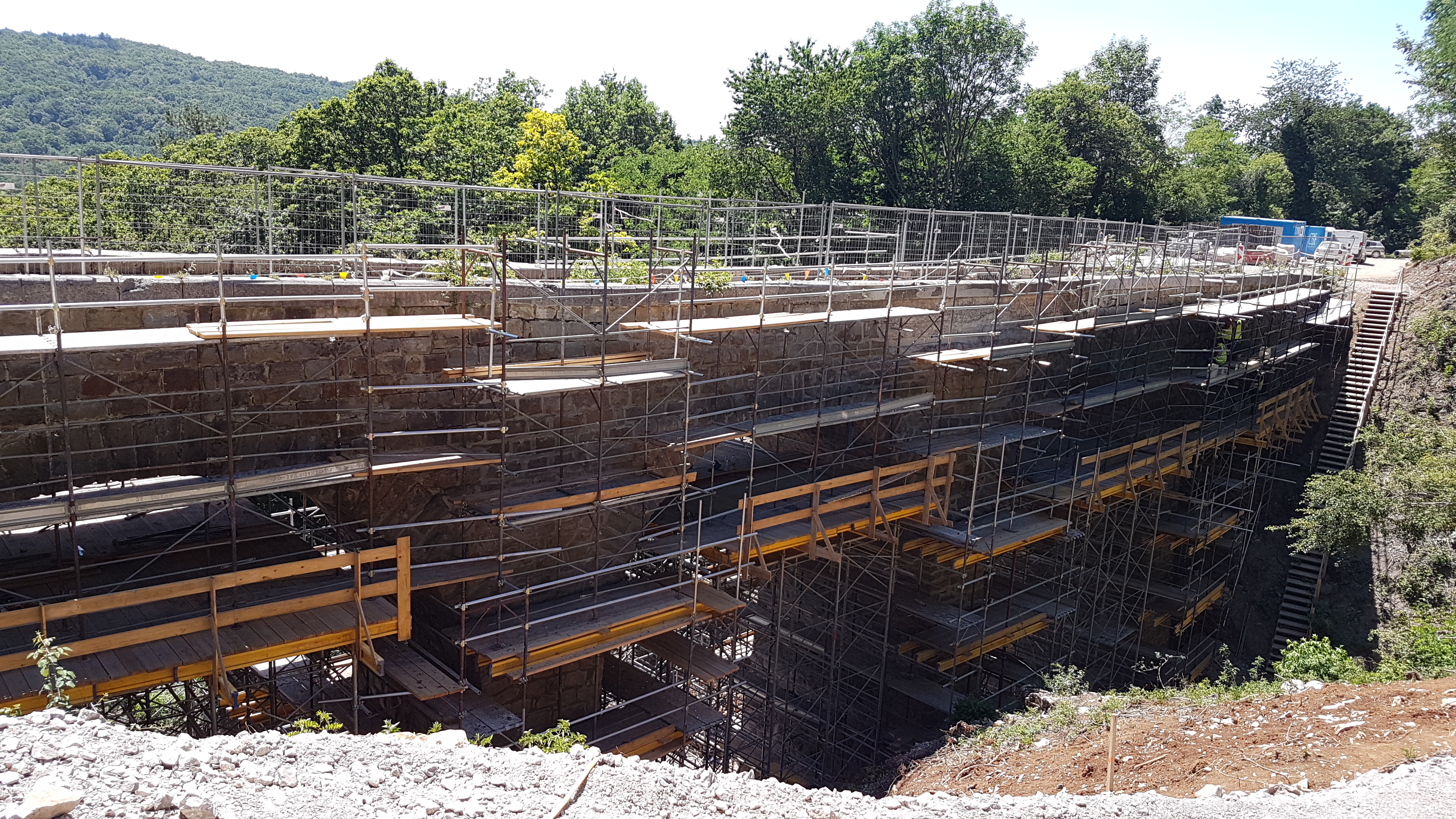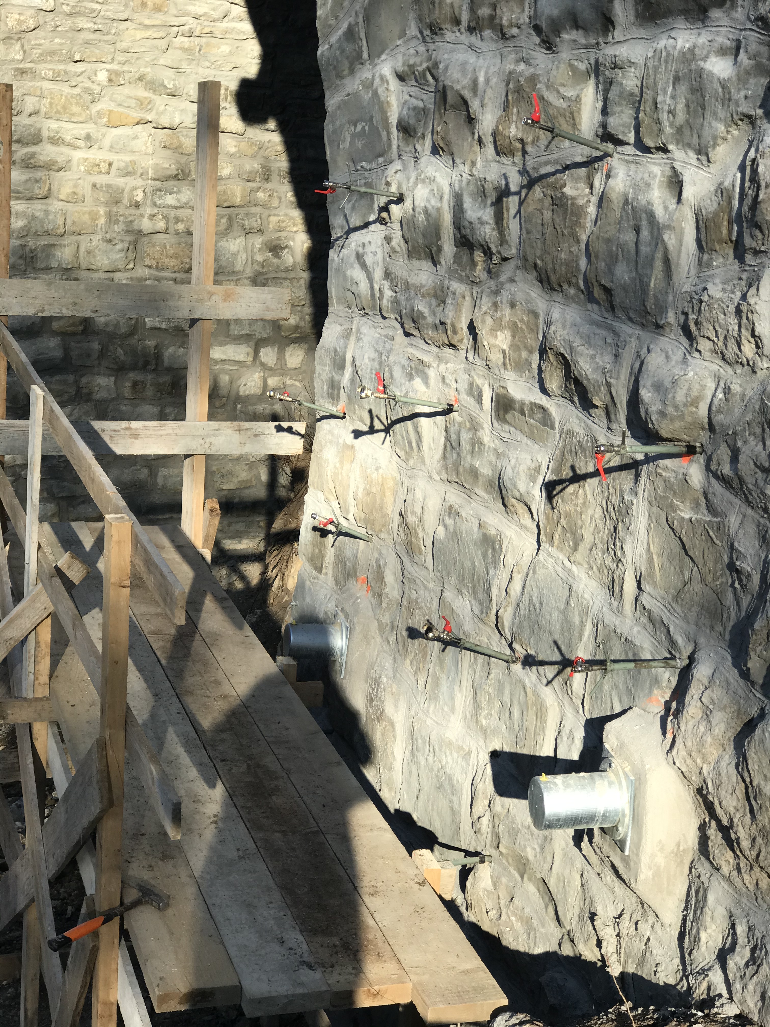 S testnim vrtanjem (ročno in strojno) ter injektiranjem smo preverili kompaktnost kamnitih opornikov in naročniku prihranili stroške nepotrebenega injektiranja več kot 200 ton cementa.